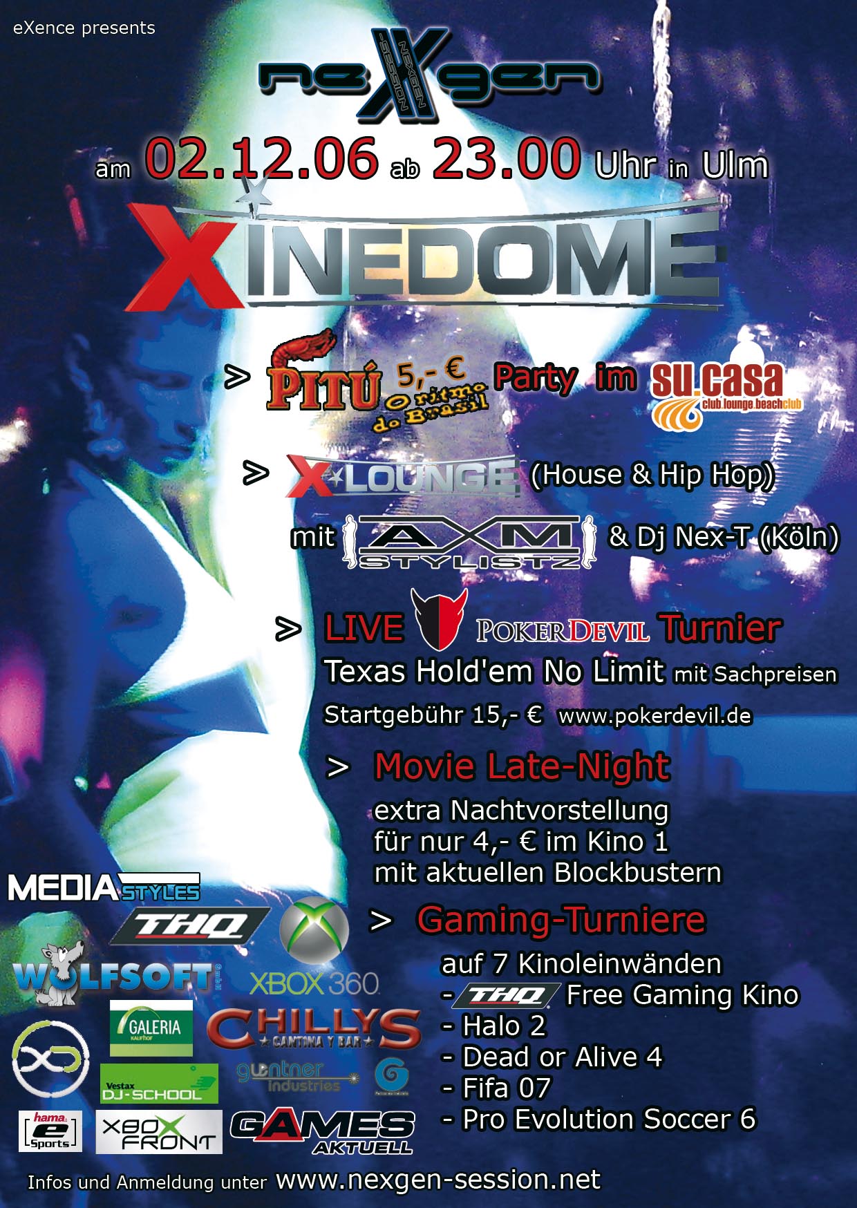 Dort könnt Ihr euch für die Nexgen-Session am 2.12.2006 Im Xinedome Ulm anmelden.